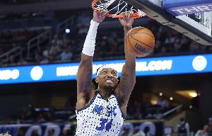 体育资讯2月25日讯 NBA常规赛,魔术上半场以53-56落后湖人。