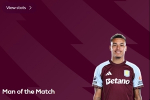 体育资讯11月24日讯 英超第12轮,阿斯顿维拉客场2-1击败利兹联。据赛后英超官方消息,摩根·罗杰斯当选此役最佳球员。